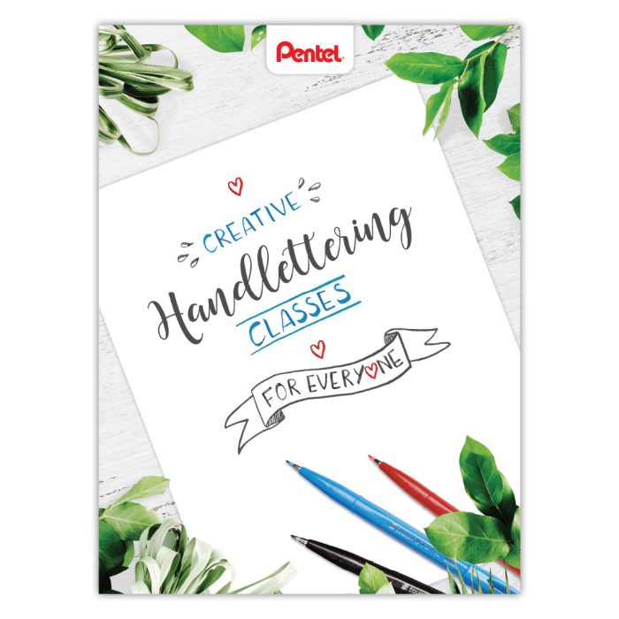 Simple hand-lettering guide from Pentel to help practise. Features written instructions for some basic hand-lettering techniques and practice sheets with room for each letter and number.